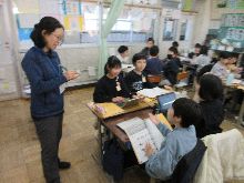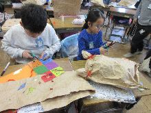 節分を過ぎ、立春を迎えたせいか、今日は暖かさを感じた一日でした。1年生が近隣の園児を迎えて、小学校のことを紹介するために、グループに分かれて準備を進めています。勉強のこと、生活のこと、給食のことなどいろいろな素敵なところを伝えるために発表の練習もしていました。図工の作品が完成したのでタブレットで撮影していました。どの角度から見せたいのか考えながら撮影していました。算数では100マス計算の足し算と引き算に取り組みました。慣れるにしたがって回答の時間が短くなり、自分の成長をよろこんでいました。2年生は図工で立体作品づくりに夢中になっていました。米袋のような素材を土台として、飾り付けや色塗りをして、自分の思いやアイデアを表現していました。5年生は家庭科で、布の性質について、自分がこれまで作ってきたエプロンとフェルトの小物、そして体育着を比べながら調べていました。厚さや伸び方、丈夫さなどの特徴をまとめていました。5年生の書写では真剣な雰囲気が立ち込めていました。すごい!と思ったら、直前に先生から注意されていたそうで...。でもみんなで気持ちを切り替えて取り組めたことが素晴らしいのです。互いの作品を見合いながら、自然によいところを伝え合っていました。6年生が50m走のタイムを計っていました。運動会と時よりも、体も大きく力強さが増して、ちょっと驚いてしまいました。4年生のサッカーでは、作戦タイムで話し合ったことを見事にゲームで実現するチームがありました。前半の動き方やルールの活かし方などをみんなで話し合っていました。チームワークを築き育てながら立派に成長しています。