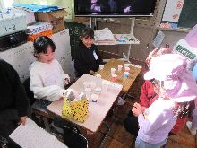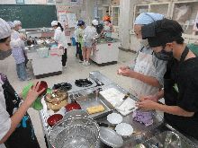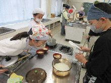 5年生がご飯とみそ汁づくりに取り組みました。「煮干しの腸(はらわた)ってどこですか?」と聞かれて教えると「へぇーっ」と感心していました。今では便利な出汁入り味噌がたくさん売られているので、初めての子も多かったです。何事も経験することが大事だと感じました。ガスコンロを使った炊飯も苦労していましたが。やはりこれも経験です。自分で作ったものがおいしいと思えることが、次につながります。