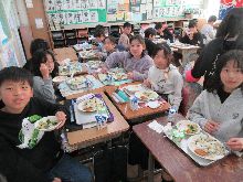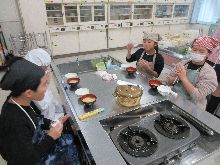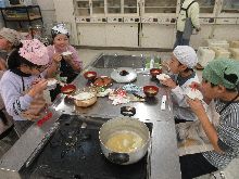 5年生の調理実習を覗きに行ったら、ごはんが炊き上がったよい匂いや煮干しの香り、味噌の匂いが漂っていました。写真は6時間目の授業の様子で、給食後ということでお腹は減っていないのですが、おいしく食べられたようです。ガラス鍋でつくることで、コメが炊ける様子がよく見えました。また、普段は食べることができないおこげもできたので、おいしく新鮮な気持ちで食べることができたようです。ぜひ、お家での実践を通して、さらに技術を向上させてほしいと思います。