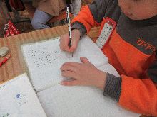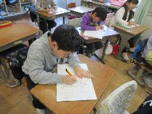 いよいよ書きぞめの練習が始まりました。3年生にとっては初めての毛筆での書きぞめです。緊張しているかと思いきや、すらすらと書いていました...。大したモノです。これから練習を積み重ねて、美しい文字を目指していきましょう。