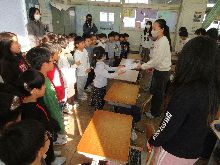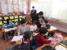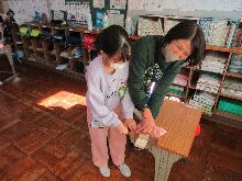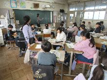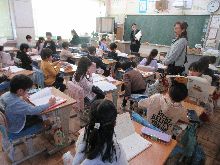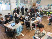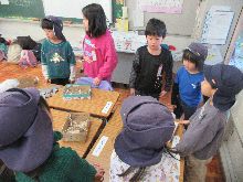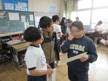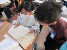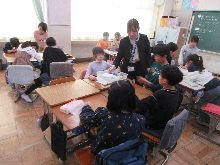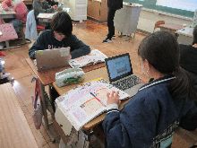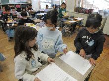 2年生の教室では、お休みしていた友達にプリントのやり方を教えてあげる場面がみられました。「やってて分からなかったらまた聞いてね」と声を掛ける姿に優しさと成長を感じました。3年生の理科で、食塩を使った重さの実験を行っていました。カップと割り箸を使って、正確にすり切れ1杯、2杯を測り取っていました。感じた重さを数値で確認する体験は、日常生活に活かせることでしょう。6年生の書きぞめ練習は、やはり静かな中で行われています。さすが最上級生です。書きぞめ会本番に向けて、これからの練習も集中して頑張ってほしいです。4年生のGSで「好きな季節」発表会をしていました。みんなの発表をしっかり聞いて、リアクションもばっちりとることができていました。5年生の社会科では、各自が調べ学習でまとめた内容を先生に確認している場面が見られました。また、先生から質問されても答えを準備していてスムーズに答えていました。調べ方やまとめ方がきちんとできている証拠です。