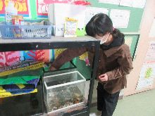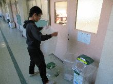 昼休みに各委員会が常時活動に取り組んでいました。環境委員会がペットボトルキャップの回収箱の袋を交換し、飼育委員会がお魚さんの餌やりをしていました。自分の当番を忘れずにテキパキ作業する姿も立派です。