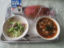| 2年生が育ててきたヨーロッパ野菜を使った給食が提供されました。私は「カリフローレのサラダ」が特に美味しかったです。 2年生の皆さん、ありがとうね。 |
