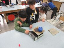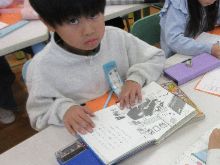 1年生がブックワールドで読書をしていました。絵本を選ぶ子が多い中、文字の多い本を選んで黙々と読んでいる子がいました。視覚よりも文章から想像して考えながら読む経験は、積めば積むほど推し量る力が育てられるのだと思いました。2年生の九九マスターへの道も大詰めを迎えていました。カードをバラバラにして、出たカードにすぐ解答・正解できる子が多かったです。これは繰り返し取り組むことが大切ですね。3年生の図工で、切った木片を紙やすりで滑らかにする作業を楽しくやっていました。こすればこするほど、表面が滑らかになりツルツルの感触を楽しんでいました。