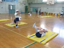 5年生がミニコートでサッカーに取り組んでいました。パスだけでつなぐルールで、パスをもらうために盛んに動きまわって声を出していました。動きの基本を学んでいるようです。2年生が鉄棒で、発表会用の演技の確認と練習をしていました。学習カードを見ながら、どの技を選ぶか話し合っている様子が立派でした。話し合いは話す方は分かりやすく、聞く方は意図をくみ取りながら行うことが重要です。5組ではノコギリで木板を切っていました。初めてやる子もいたようですが、力の入れ方を気を付けて、綺麗にまっすぐ切れました。これも立派です。1年生が大繩を練習していました。「ハイっ」という掛け声に合わせて縄に入っていけるように取り組んでいました。練習を重ねてみんなで連続で跳べるように頑張りましょう。3年生は図工室で木を切っていましたが、作業が終わった子が塵取りと箒をもってきて、細かなおがくずを丁寧にとっていました。床の角にも気を付けて、ゆっくり・しっかり綺麗にしてくれました。