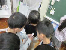 4年生のリコーダー練習を見てみると、とっても姿勢がよいことに感動しました。私は猫背なので尊敬してしまいます。よい姿勢がよい演奏を生み出すのですね。5年生が3人一組で、おすすめのメニューを紹介し合っていました。栄養素や効能?についても詳しく調べて資料にまとめ、わかりやすく説明し合ってました。3年生の理科で形が変わっても重さは変わらないのか?を検証していました。粘土細工?を楽しんでいるグループもありましたが、重さを比べた結果から、自分たちの言葉でまとめていました。6年生がサッカー大会に向けて、応援グッズを作っていました。それぞれが思いをもって様々な言葉の選んでいました。練習も始まっています。クラスの団結をさらに高める機会になることを期待しています。4年生が物の温まり方の実験をしていました。グループ毎に加熱する場所を変えて、結果の比較をとおして考察につなげます。グループで協力して取り組む様子に成長を感じることができました。また、GSでは自分の好きな季節とその理由を伝え合っていました。私にも説明してくれる子がいてくれて嬉しかったです。どの子も英語を話すことに抵抗はなく、楽しみながら活動していました。「英語アレルギー」なる言葉は、今の子たちには当てはまらないところが素晴らしいと強く感じます。これからも、楽しく英語と関わってほしいです。