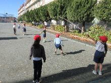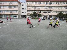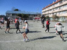 2年生が長縄を、5年生がサッカーを、それぞれ寒さに負けずに元気に取り組んでいました。チームワークよく声を掛け合う様子に成長を感じさせられました。