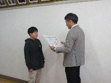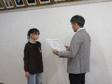 今日はオンラインで表彰朝会を行いました。夏休みから2学期にかけて行われた各種作品展などでたくさんの児童たちの力作がいろいろな賞を受賞しました。朝会ではその中から代表で10名に賞状を渡しました。代表に相応しく、私と目線を合わせて堂々とした態度と表情で臨むことができました。大変立派でした。他の受賞した子は各教室で担任の先生から受け取っていました。これからも自分の得意を活かして、チャレンジを重ねてくれることを期待しています。