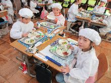 2学期最後の給食は、セレクト給食で事前に選んだ「お星さまハンバーグ」か「照り焼きチキン」で教室は盛り上がっていました。全校で見ると、選んだ子が多かったのは...、ぜひお子様に聞いてみてください。そして、給食を通して「食」に関する話題を話すきっかけにしていただければ嬉しいです。