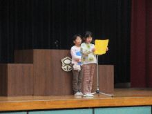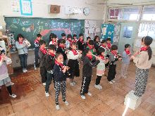また、児童代表の言葉では、1年生と2年生が2学期を振り返り、頑張ってきたこととこれからの目標を堂々と発表してくれました。大変立派にやり遂げました。そして、全員の肝を合わせて歌声で校歌斉唱をして、終業式を執り行うことができました。通知表は一人ずつ担任の先生から、成長したところや頑張ってほしいことなどを伝えながら受け取っていました。ぜひご家庭でも話題にしていただき頑張ったところをほめてあげてください。そして、頑張りたいことに取り組むための計画を一緒に考えてみてはいかがでしょうか。ぜひおすすめします。