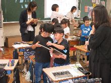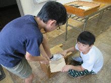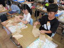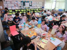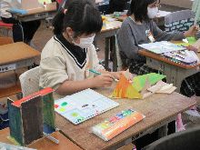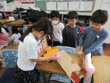 まず、4年生が板を切り分け、キリで穴を空け、くぎを打ったりボンドで貼り付けたりとアートな活動を楽しんでいました。6年生の図工は、グループでキャラクターとストーリーを考えて紙芝居のように場面絵をつくる活動をしていました。タブレットを使ったり、やはり手書きでキャラクターを書いたりと、それぞれのメリットを活用していました。また、家庭科ではミシンで袋づくりも中盤に差し掛かってきました。入り口の縫い方に戸惑っていましたが、どうにかこうにか口を閉じて縫ってしまうことはなかったようです。2年生が、1年生と遊ぶためのおもちゃの最終調整を行っていました。どの子も完成度が高くなっていて、最後まで一生懸命作りこんだことが伝わってきました。ぜひ楽しい時間を過ごしてほしいと思います。1年生の図工では、パクパク?をつくってそこに目や耳など様々なパーツを取り付けて作品を仕上げていました。他クラスでは鍵盤ハーモニカの練習をしていました。2年生も音楽で、グループ内で学期の役割分担を話し合いで決めていました。どのグループも仲良く相談して決められたようです。とても素敵で大切なことですね。どの学年も芸術に溢れた一日となりました。