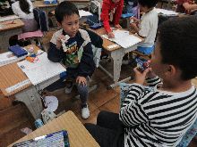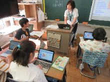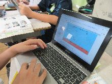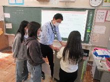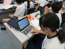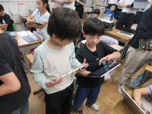 4年生が図工で、ノコギリで板を切っていました。ノコギリを初めて使う子も多かったですが、次第に慣れてスムーズに切り分けていました。また、断面を紙やすりをかけて、滑らかになった表面を気持ちよさそうに触って楽しんでいました。1年生が運動会の表現の練習をしていました。なかなかリズムが速くて難しそうですが、本番に向けて頑張ってくれることと思います。GSで5年生は3分間でアルファベットのカードを並べるチャレンジをしていました。中には「目標は2回以上並べること」と教えてくれる子もいました。私がアルファベットを覚えたのは中学生でした...。3年生は自分で選んだもので3ヒントクイズをプレゼンソフトでつくり、英語で発表していました。興味のあるもので英語に慣れ親しむことができる活動で、みんな楽しく参加していました。5年生は自動車産業に関する学習カードをいくつか選び、解答をしながら理解を深めていました。また、算数では「2mを3つに分けたら」という課題に対して、自分の考えを数直線やテープ図などを使って表現していました。タブレットの活用を進める中で、ノートを使うよさもあればクラウドの瞬時に共有できるよさを活かしながら、よりよい授業の実現を目指していきます。 今日も文蔵っ子たちの笑顔がたくさん見られた一日でした。