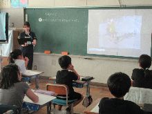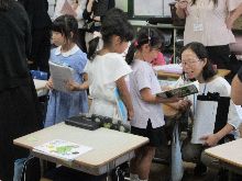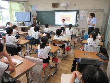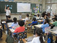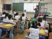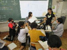4年生が未来くる先生事業で、講師として視覚障害の方と盲導犬を迎え、福祉について学習しました。講師の先生はご自身の生活の様子や普段使っている便利なものを紹介してくれたり、そしてキュウリを使っ包って鮮やかな包丁さばきを披露したりしてくださいました。特にキュウリの皮むき?はその薄さにみんな驚かされました。また、寸劇を通して、街中での声の掛け方や盲導犬への対応などを具体的に教えていただきました。そして、なにより普段の生活の中で、「困っている友達がいたら助けてあげる」「自分が困ったら助けてもらう」ことが大切だと教えていただきました。障害の有無に関わらず、「困っている人は助ける」という優しい心で優しい行動ができる人になれるように、みんなで成長していきたいと思いました。貴重な機会となりました。