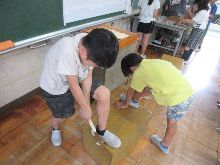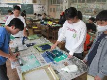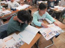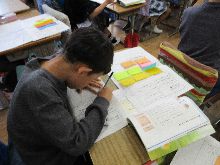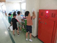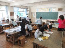 算数の授業で、2年生が三角定規を使って直角を、4年生は学校の中にある四角形(※写真は消火栓の箱)を探していました。学習内容が系統的に組まれており、既習事項を活かして問題解決が自力でできる算数の特性が表れていました。5年生が図工で掘り進み版画を進めています。今後は自分たちで活動できるように、作業の場所やインクの出し方の確認をみんなで行いました。彫刻刀という専門的な道具を使います。安全で正しい使い方をマスターし、素敵な作品作りに努めてほしいと思います。授業が終わった後に先生を追いかけてきて廊下で質問をする6年生がいました。授業中でなくとも疑問に思ったことを自主的に解決しようと行動できる姿が立派でした。1年生が全員で音読をしました。姿勢よく、間違えずに読めたのは、毎日家庭での音読を頑張っている証です。「継続は力なり」ですね。3年生が国語でインタビューをした先生たちにお礼の手紙を書いていました。きちんと礼をわきまえた手紙を書くのは初めてですが、丁寧な内容を丁寧な字で一生懸命書いていました。