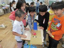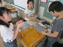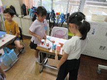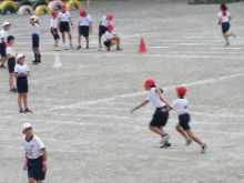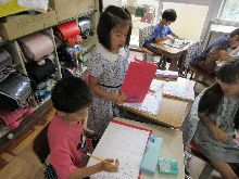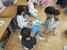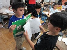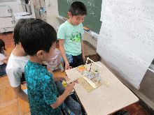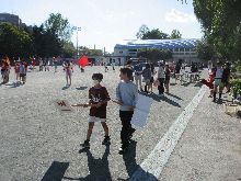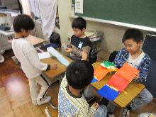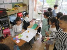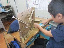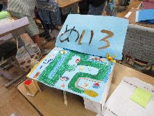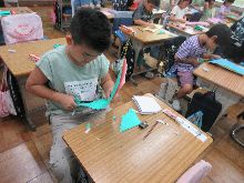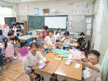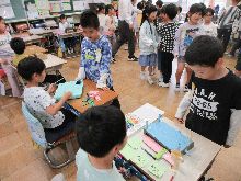 来週の水曜日に、1,2年生が「おもちゃまつり」を行います。2年生の教室では、一生懸命作ったおもちゃを使ってお客さん対応の練習をしていました。お店側もお客側もどちらも楽しそうに過ごしていました。来週の本番では、1年生を存分に楽しませてくれると思います。笑顔があふれる時間にしてください。5年生が運動会種目でのリレーの練習をしていました。バトンパスの際の走るスピードがだんだんと速くなってきました。練習を繰り返してきた成果です。まだまだ上手になる時間があるので、期待しています。1年生の図工の作品が完成したので、どの子も笑顔で見せてくれました。手にはめてパクパクする構造を使った作品で、どの子も自分の好きな動物やキャラクターを表現することができていました。特に色の使い方に個性を感じました。オリジナリティあふれる素敵な作品をつくることができました。