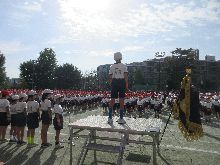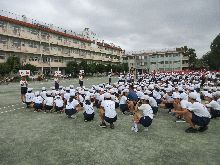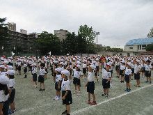 運動会が近づく中、初めての全体練習を行いました。金管バンドのファンファーレから入場行進、優勝杯返還、児童代表あいさつ、応援団による誓いの言葉、応援合戦と盛りだくさんでしたが、事前の各学年ごとの練習が効いて、予定時刻前に終わらせることができました。子ども達には「練習には真剣に一生懸命取り組もう」というお話をしましたが、そんな話をするまでもなく文蔵っ子たちは運動会に向けて頑張っています。当日に至るまで、体調管理と体操着や用具等の準備でお世話になりますが、「子ども達の笑顔のために」ご協力ください。