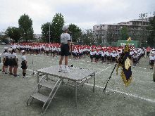 約1か月間に渡り練習に取り組んできた文蔵っ子達は、それぞれ全力で取り組むことができたと思います。練習を始めた頃と比べて、競技も演技も段違いに上達している様子を見て本当に感動しました。この成長の過程を見届けることができるのも、教師冥利に尽きます。この成長は、保護者の皆様の日頃からのご支援と地域の皆様のご協力あってのことです。誠にありがとうございます。子ども達には、運動会に関わらず、普段から安心安全に学校生活を送ることができるのは、自分たちが気づかないことが多いけれど、自分たちが思っている以上にたくさんの人たちに支えられていることを伝えてまいります。例えば今日も、PTAボランティアさんに、朝の椅子出しや閉会後の机やテントの片づけ等で、快くご協力をいただきました。本当に助かりました。その感謝の気持ちを「笑顔であいさつ」という目に見える形で伝えていけるように、これからも教職員一丸となって子ども達と接してまいります。引き続き、皆様のご理解とご協力をお願いいたします。