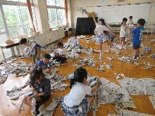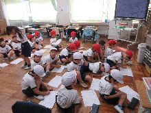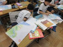 2年生の国語で「サケの一生」の説明文をもとにして、マップを作っていました。季節ごとに分けたり、反対に四季をまとめたり、川の上・中・下流で捉えたりと、同じ説明文からその読み取り方や心に残ったことによって、こんなにもオリジナリティあふれる資料になることが面白く素晴らしく感じました。また、図工では新聞紙を丸めたり破いたり棒状にしたりと、ありとあらゆる手を加えて創作遊びを楽しみました。これだけバラまいても多目的ホールなら掃除するのも大丈夫!お家ではできない楽しい時間となりました。6年生の図工も佳境で、みんな色塗りに取り組みました。色のつくり方や塗り方、濃さなどすべてにこだわっている子が多くいて、見ていてとても楽しかったです。同じ図工を通して、小学校の6年間で大きく成長していくことを実感しました。これからもよりよく成長するために、教職員一同頑張ってまいります。