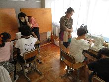 今日もミシンボランティアとして保護者の方にサポートしていただき、子ども達は安全に着実にエプロンづくりを進めています。ミシンのトラブルもなく、落ち着いて製作することに集中していました。完成に向けて、引き続きご協力いただける方は各学年担任までご連絡ください。