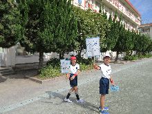 また、地域の皆様には、登下校時の旗振り・見守りや地域の行事等で、文蔵っ子たちのよりよい成長のために多大なご協力をいただき、感謝の念に堪えません。実は、これら以外にもお世話になっていることを改めて知りました。給食室に面した道路付近にイチョウがあり、今は銀杏の実ができています。ご存じの通り、果肉を踏んでしまうと強烈なにおいを発生してしまいます。そこで子ども達が登校する前に、箒で掃いて踏まないようにしてくださる方がおられました。また、通学路に雑草が生い茂り、歩道に立ててある交通安全の看板が隠れてしまわないように草取りをしてくださる方もおられました。おそらく、私が知らないところでたくさんの方が、文蔵っ子の安全と安心のために、動いていただいていることと思います。子ども達にもこのことを伝え、「笑顔であいさつ」で感謝の気持ちを伝えられるようにしていきたいと思います。改めてお礼を申し上げるとともに、これからもどうぞよろしくお願いいたします。
