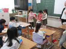 さて、今日は2年生が1年生のために一生懸命準備してきたおもちゃでおまつりを開催しました。その名も「おもちゃまつり」です。各教室と視聴覚ホールと多目的ルームの計5会場で、にぎやかに行われました。初めは緊張してもじもじしていた1年生もいましたが、2年生が優しく声を掛け、わかりやすく遊び方を説明してくれたおかげで楽しむことができたようです。また、楽しむ1年生を見て、さらに2年生の嬉しさが増して、次々と1年生たちを笑顔にしてあげることができました。異年齢交流を通して、子ども達の世界が広がったと思います。この経験が次への活動の土台となり、さらにアイデアを膨らませて、「みんなのため」を大事にする思考や行動に結びついていきます。みんなが関われた「おまつり」は、とても楽しく素晴らしい時間となりました。「おまつり」という言葉を聞いただけでわくわくしますが、保護者が主体となって取り組む「文蔵小まつり」が、昨年に引き続き、今年も行っていただけることになりました。今日はそのおまつりの準備をしておられました。「子ども達に楽しんでほしい」という気持ちには感謝しかありません。これから文蔵っ子達のよりよい成長のために、お忙しい中恐縮ですが、お力添えを賜りたいと願っております。