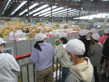 大田市場では、最初に映像で市場の概要を学び、その後広大な青果市場の見学ルートを回って、自分の目と肌と匂い、音などを実感しながら見学してきました。ダンボールに入ったたくさんの種類のたくさんの野菜を、たくさんのフォークリフトやターレが縦横無尽に走り回って運ぶ様子や産地から到着した大型トラックいっぱいに積まれた野菜が搬入される様子など、たくさんの人がたくさんの仕事に携わっている姿を目の当たりにすることができました。リンゴがたくさん運び込まれていて、漂う香りから「旬」真っ只中!を感じることもできました。