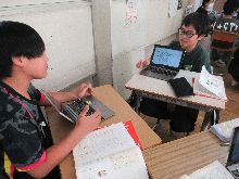 5組では、朝の業前運動で応援歌の練習をしていて、気合の入り方が違っていました。1年生は計算カードでお互いに問題を出し合い、素早く正確に答える活動をしていました。練習の成果として、繰り上がりもへっちゃらで即答できる子たちがたくさんいました。繰り返し取り組むことで基礎・基本が身に付いてきました。どの学年も運動会に向け、一生懸命練習に取り組んでいます。本番までのこりわずかですが、最後の最後まで、練習を大切にして自信をもって本番に臨んでほしいです。5年生のエプロンづくりも順調に進んでいます。ミシンの扱いも理解して、まっすぐ縫うことができていました。完成まで気を緩めることなく、仕上げてください。6年生社会科では、3人の武将について自分が調べたことをタブレットでまとめ、資料を示しながら意見交換していました。活発な交流ができていました。業間休みもたくさんの文蔵っ子が元気に外遊びを楽しんでいました。