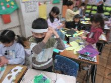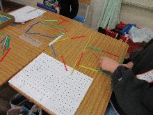 1年生 色棒を使って図形を作っていました。 プリントで作図をしたものを、 具体物で表現していました。 操作する楽しさを感じていました。 |
