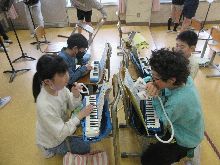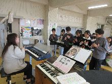 6年生 「6年生を送る会」で披露する曲を パート毎に発表練習をしていました。 演奏者が徐々に増えていき、 綺麗なメロディーを奏でていました。 |