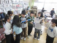 図工で、1年生は輪っかを使って自分を変身させる飾りを作っていました。男の子は、刀を作っている子が多かったです。自分の好きなキャラクターを参考に、楽しく作業を進めていました。6年生は「白くなったら見える世界」という単元で、いよいよ仕上げに入ってきました。柔らかさを活かした作品たちに一人ひとりの個性が表れていました。小学校生活最後の作品として、最後まで頑張って楽しく作ってください。5年生がルパンのテーマをパート毎に練習していました。見るたびに上達してます。算数では、6年生は自分の進め方で総復習に取り組んでいます。教科書の問題もあと数ページとなっていました。3年生はコンパスを使って円や正三角形などを作図していました。コンパスの使い方のコツを見つけてほしいです。廊下に掲示してあるクラブ見学会の振り返りには、楽しみにしている気持ちが表れていました。理科では、3年生が実験で使った磁石のキットを使って、2年生が楽しめるおもちゃを考えながら作っていました。1人だったりグループだったり取組は様々ですが、みんな一生懸命考えていました。6年生は小学校生活のまとめとして、SDGsと関連させてこれまでの学習をまとめていました。