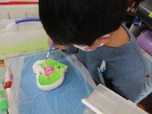1年生が算数で、自分だけで考えて表した図を先生に見てもらっていました。あっているのかドキドキした子もいたようですが、合格をもらって嬉しそうにしていました。タブレットの使い方を見てみると、1年生は指でなぞって文字に表していましたが、2年生になるとキーボード入力をする子が多く見られました。1年でたくさんのことができるようになるの目の当たりにしました。子どもの成長はすごいですね。図工では、4年生の作品が続々完成しています。点灯させてうっとり眺める姿が見られました。2年生は紙粘土で作った飾りに色を付けて仕上げをしていました。お家の人にプレゼントするために、綺麗に丁寧に色付けをしていました。気持ちがこもっていますね。3年生の理科で、磁石と電気を使っておもちゃ作りをしています。写真の子は成功すると豆電球が点く仕組みを頑張って作っていました。試行錯誤を繰り返して完成を目指してください。5年生は今日も白玉づくりに取り組んでいます。今日は3クラスが次々に実習をするため、家庭科室は大忙しでした。どのクラスも楽しく仲良く協力して活動できています。みんな笑顔でおいしく食べていました。お家でもチャレンジして、家族みんなで笑顔になってくださいね。