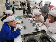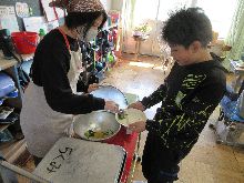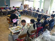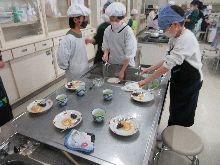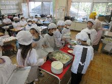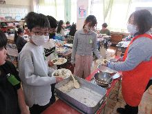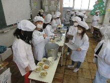 5年生 ご飯の量を調整していました。 手作りふりかけが好評だったようです。 塩肉じゃがも大変おいしかったです。 |