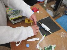 3年生 理科 写真を見ると、図工に見えますが、理科の実験キットを 使っておもちゃ作りをしています。 磁石の性質を活かし、工夫を凝らした仕掛けを思いつき、 実現するために試行錯誤していました。 完成まで頑張ってください。 |