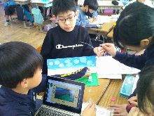 5年生 クレイアニメの撮影風景です。 チームワークが鍛えられていく 様子が伝わってきました。 素敵な作品に仕上げてください。 |