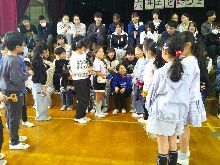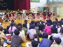 【5年生】 6年生の入学した年から、 それぞれの年で流行した歌を 踊り付きで披露しました。 6年生も懐かしがっていました。 |