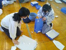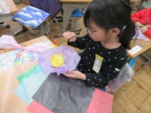 【1年生図工】 お花紙をくしゃくしゃにしたり丸めたりして |