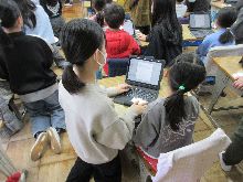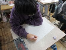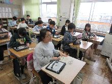 今日は雨が降って寒い一日でした。そこで休み時間の過ごし方を見てきました。1年生と3年生は、6年生を送る会に向けて、それぞれ代表児童の練習をしていました。いっぱいお世話になった6年生に感謝の気持ちを上手に伝える準備ができているようです。廊下で軍手をしている4年生のグループがいました。聴いてみると、学校をきれいにするために、校内に落ちているごみを見つけて拾っているのです。学年集会で指導された話を受けて、自主的に行動できる姿が素晴らしかったです。ブックワールドでは、本好きの子たちが静寂の中で、黙々と読書をしていました。また、図書委員会の子も黙々と本を書架へ戻す作業をもくもくテキパキとしていました。しっかり働いてくれていました。3年生の教室では、鍵盤ハーモニカの練習やキーボード入力をする子が多かったです。そして、「かごめかごめ」をしている子がいました。久しぶりに見て懐かしく思いました。6年生が、体育のソフトバレーボールのチーム編制を相談しながら取り組んでいました。やり取りする会話の中に、仲のよさと優しを感じることができました。外遊びができなくても、休み時間を十分満喫している様子が伝わったでしょうか。他にも折り紙で遊んでいる子も結構いました。ある子から、「(折り紙)パンセット」をもらいました。とてもかわいくよくできていました。ありがとう。5年生が調理実習で白玉を作りました。この1年間で手際がよくなり、準備も調理も片付けも短時間でできました。白玉もおいしく仲良くいただけました。ぜひお家でもふるまってください。