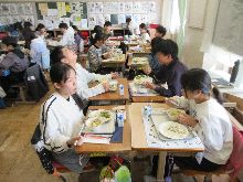 6年生 配膳も素早く終わっていて、食べ始めるのも早かったです。 食べるのも速い子が多くなりました。