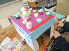 6年生の奉仕活動 その1 新1年生用の道具箱を 組み立てました。 |