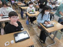 5年生 5年間お世話になったタブレット。 返却するために、自分のタブレットを 自分で回収箱に入れました。 |