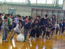 【1年生】 「大きなかぶ」を題材に 寸劇を行いました。 なかなか抜けなかったかぶを 6年生に協力してもらって 抜くことができました。 |