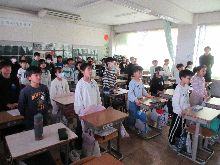 3年生 修了式に向けて、国歌と 校歌の練習をしました。 「さざれ石の」の歌い方に 気を付けました。 |