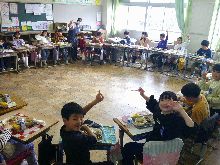 2・3年生 3年生が作ったおもちゃで 2年生が遊ばせてもらっていました。 遊び方を優しく教える3年生と ニコニコと嬉しそうに楽しむ2年生。 笑顔がいっぱいでした。 |
