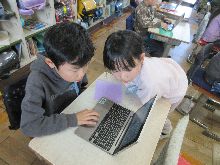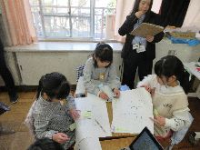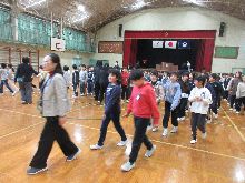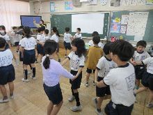 1年生が生活科で「冬探し」をしていました。普段入れない体育館裏で、冬以外にもいろいろと発見をしたようです。3年生がグループ学習を進めながら、手を挙げて発表する場面に出会いました。以前は当たり前だった風景ですが、とても懐かしく感じました。効果的な学習方法で取り組んでまいります。GSも楽しそうに活動する姿がよく見られます。2年生は音楽で、曲に合わせた動きをしながら笑顔で動き回っていました。やはりコミュニケーションが取れる活動はやっていて楽しいですね。