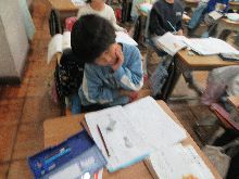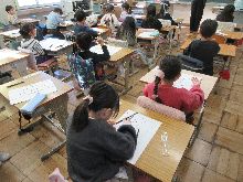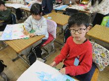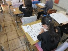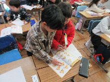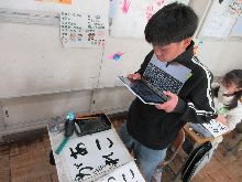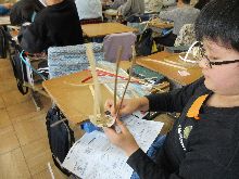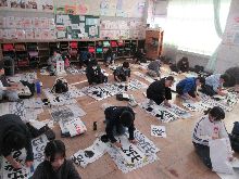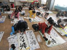 そして、全学年で書きぞめ会を行いました。初めて取り組む1年生も一生懸命取り組みました。失敗してしまいくじけた子もいましたが、その後気持ちを立て直して作品を仕上げることができました。どの教室でも、冬休みの練習の成果を発揮するために、真剣に取り組み頑張る子の姿が見られました。