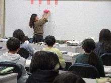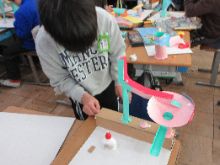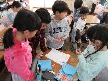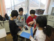 5年生のビー玉の通り道製作の全貌が見えてきました。カッターで細かく切れ目を入れてカーブを作り、補強をしながら組み立てていました。写真は、プールのアトラクションを彷彿とさせる仕組みで、一生懸命作っていました。みんな納得のいく作品に仕上げてほしいと思います。6年のGSで、あみだくじを使って「turn left」「turn right」「go straight」の練習をしていました。今度は実際の席順を使った活動を行います。3年総合で、グループ毎に「学校のためにできること」を考え、そのために「実行すること」を相談していました。自分たちの行動で、学校をよくすることができることを実感してほしいです。6年生の理科で、キットで発電して蓄電したり、モーターを回したり豆電球をつけたり、光電池の角度を変えてより明るく灯るようにしたり、生き生きと活動していました。3年国語で発表の練習をグループで行っていました。わかりやすく伝えるための工夫について、話し合っていました。4年生が年度末・年度初めの行事で使うお花を作っていました。与えられた役割を果たすために真剣に、でも楽し気に取り組みました。5組は体づくりで、「あんたがたどこさ」に合わせて、ジャンプや拍手をする動きを頑張っていました。連動させるのに苦労していたようですが、やるにつれてだんだん上手になっていきました。業間休みは、2月の体育朝会に向けて、長縄の練習を頑張るグループが見られました。先生が縄を回したり、上級生が1年生の縄を回してあげたりと、運動だけでなく心も成長できる取組になっていました。やさしく見守る6年生の姿が素敵でした。本番に向けて、クラスの心もそろうといいですね。