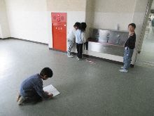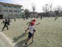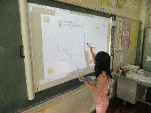 1年生の国語「せかいのみぶり」で、自分が見つけた身ぶりを発表していました。手をパーにして両手を腰に当てたこの身ぶりは...「怒っている」です。「なるほど」と声が上がりました。発表の仕方もずいぶん上手になり、成長を感じました。4年生の算数「面積を工夫して求める」課題に対し、教室のドアに挑んでいました。長いものさしがなかったため、友達同士で協力して取り組んでいました。見事なチームワークです。業間休みは3,5年生の縦割り遊びで、線オニをしていました。3,5年生がペアになって手をつなぎ、逃げたり追いかけたりする光景にほっこりしました。