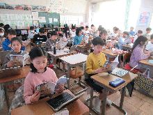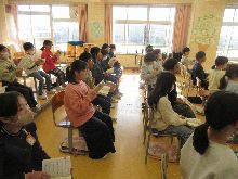 今日は、1,2年生がボランティアさんによる読み聞かせをしてもらいました。お話の内容も楽しいものですが、図書ボランティアさんの読み方がとても上手で、どんどんお話に引き込まれていきました。低学年のどのクラスも静かに真剣に聞き入っていました。いつも本当にありがとうございます。