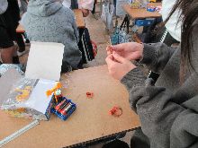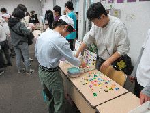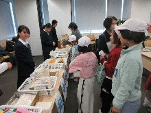 その後は頒布会に行き、南区の中学生が作った作品等が並んだブースで、しおりやバッチ、根付け、手帳やブックカバーなど素敵な手作り商品を何度も見て回り、お気に入りを買うことができました。大事にバッグにしまう様子から、よい買い物ができたようです。