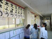 今朝、登校した子ども達が教室の廊下に貼られている書きぞめを見入っていました。賞の札が貼られていて、賞に入らなくて残念そうにしている子たちがいましたが、悔しい思いが奮起を促すエネルギーとなります。この気持ちをチャレンジ精神に変えて、書きぞめだけでなく、これからの活動全般に活かしてくれることを期待しています。入選した子たちは頑張った成果を噛みしめ、自信につなげてください。このように、結果の受け止めは様々ですが、真剣にやったからこそ得られる思いを味わうことができたことが、全員にとっての成果なのです。みんなよく頑張りました。校内書きぞめ展覧会として、20日(火)、21日(水)、23日(金)の3日間、14:45~15:30の期間を保護者の皆様に公開します。ぜひ、お子様の努力の跡をご覧ください。